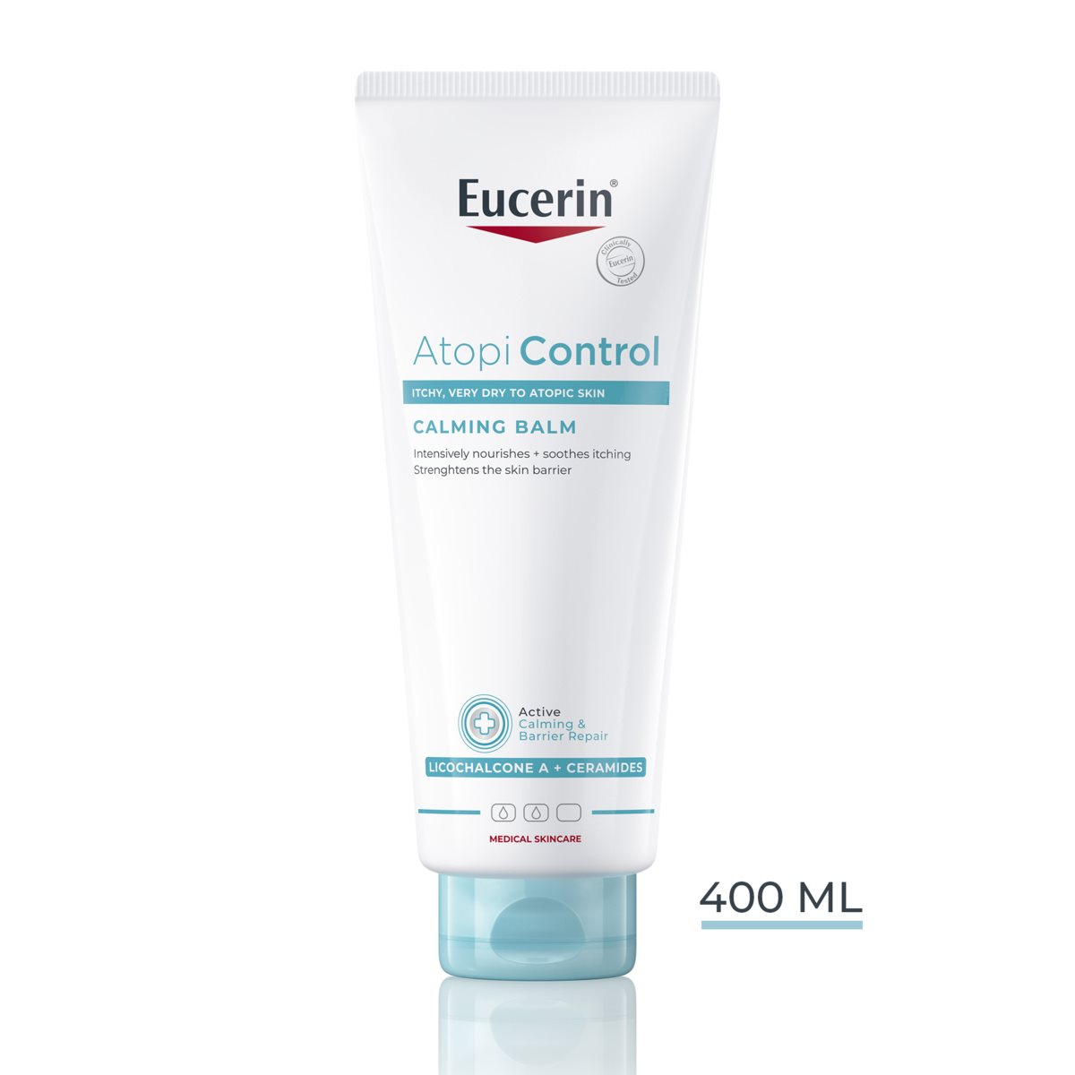 O Eucerin Atopi Control Bálsamo Apaziguante é um bálsamo corporal de uso diário que foi especialmente formulado para acalmar e hidratar intensamente a pele irritada e com prurido. Este bálsamo óleo em água, leve mas nutritivo, é enriquecido com Licochalcone A, Ceramidas e Manteiga de Karité, que reforçam a barreira cutânea e aliviam a secura e o prurido. Também deve ser utilizado durante uma fase de crise, juntamente com o Eucerin Atopi Control Creme Fases Agudas, o Eucerin Atopi Control Spray Anti-prurido e a sua medicação habitual. O bálsamo para o cuidado da pele com tendência atópica proporciona uma hidratação imediata, tornando a pele suave e macia e, quando aplicado regularmente, melhora visivelmente a condição da pele.