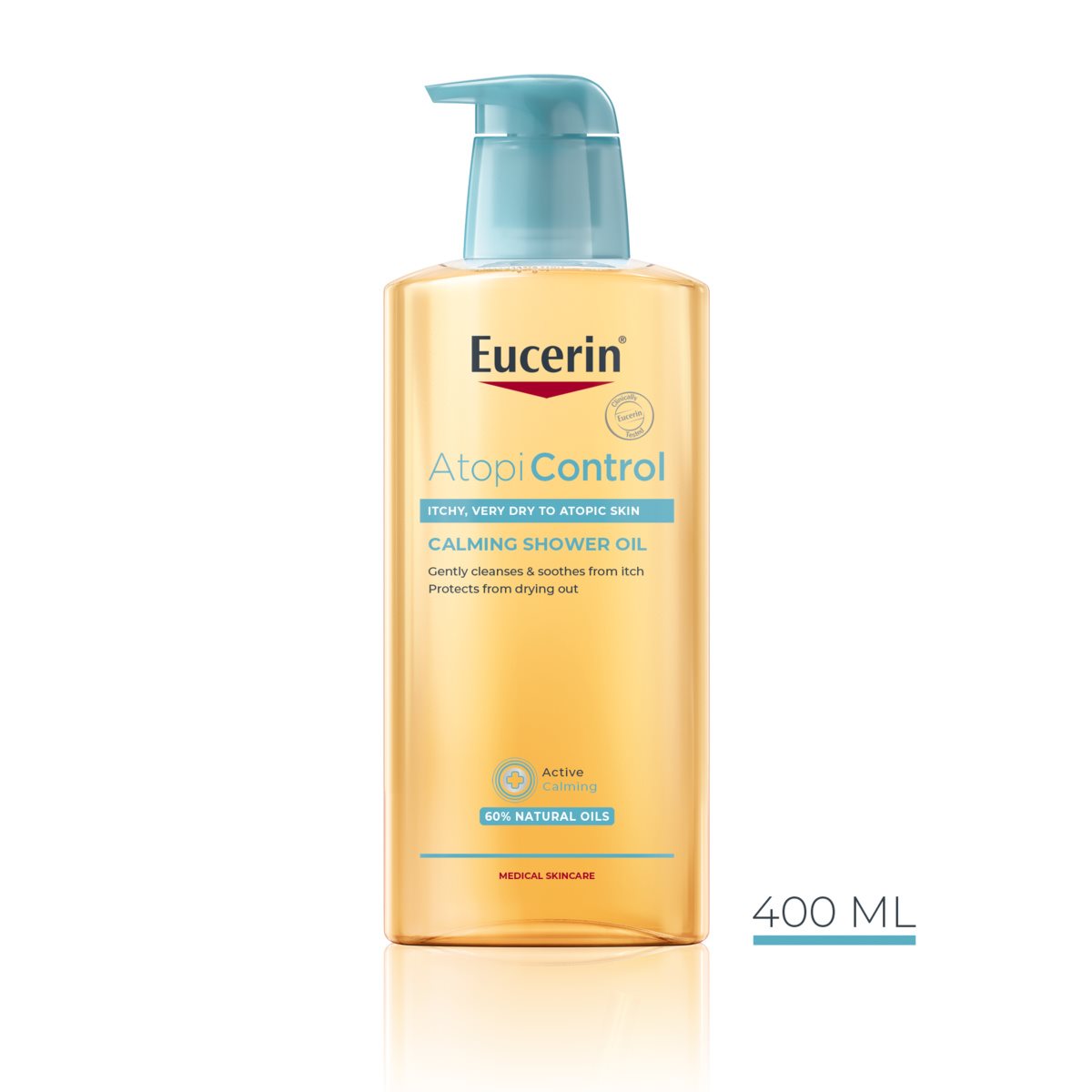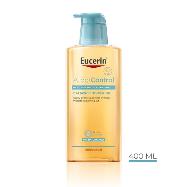 O Atopi Control Óleo de Banho Apaziguante da Eucerin, sem sabão, não contém fragrância e é adequado para adultos, crianças e bebés desde o primeiro dia.