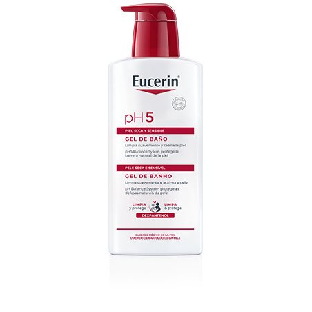 Eucerin pH5 Gel de Banho é um gel de limpeza para uso diário, sem sabão, com surfactantes extra-suaves que garantem uma limpeza suave, mas eficaz, da pele seca e sensível. A fórmula única com pH Balance System proporciona o pH ideal para proteger as defesas naturais da pele, preservar a sua resistência e evitar a secura.