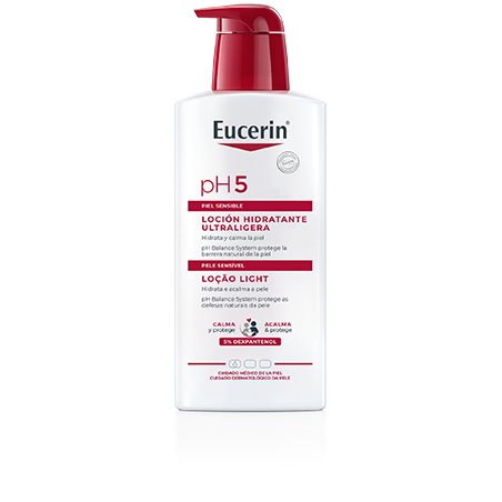 Todos os produtos Eucerin pH5 foram especificamente formulados para combinar uma excelente protecção e regeneração da pele com uma tolerância cutânea clinicamente comprovada. O Eucerin pH5 Loção Hidratante é adequado para utilizações frequentes em peles com tendência a alergias de tipo 1, como a febre do feno.