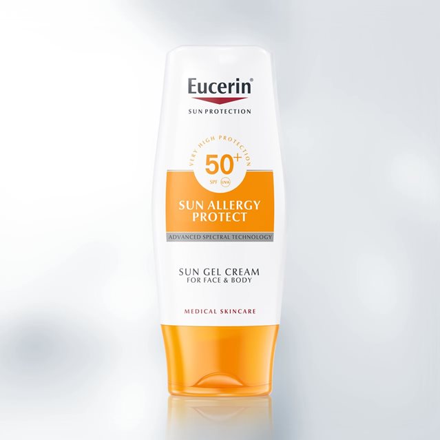 Eucerin Creme-Gel Solar Protecção Alergias FPS 50 oferece um elevado nível de protecção solar, bem como uma protecção eficaz contra as alergias solares no rosto e corpo.