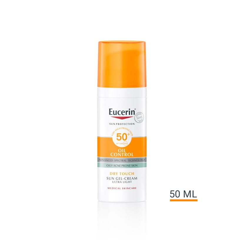 Eucerin Sun Gel-Creme Oil Control Toque Seco FPS 50+ foi desenvolvido com a tecnologia Oil Control que cuida a pele com necessidades específicas oleosa e com tendência acneica. A fórmula L-Carnitina sebo-reguladora e a combinação de três pigmentos de absorção de lípidos, oferece à pele um efeito seco matificante imediato e duradouro mesmo em ambientes quentes e húmidos.